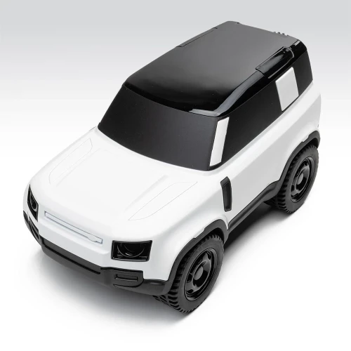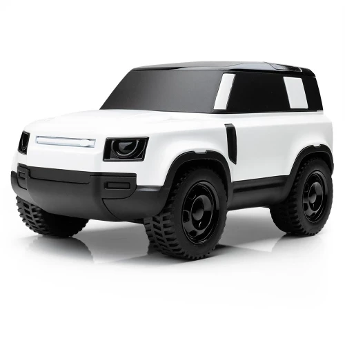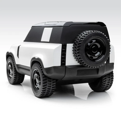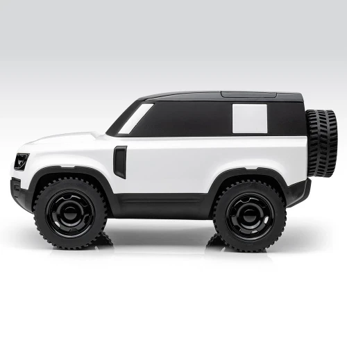 Defender Icon-modell i hvitt. En hyllest til den nye Defender med sin perfekte form og tidløse design. Inkluderer ikoniske detaljer som frontlykter og stolper.