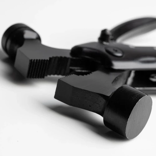 Avansert multiverktøy med matt svart hardware. Inneholder 11 funksjonelle verktøy, inkludert hammer, tang, glassknuser, knivblad, sag, biffkniv og avbitertang.