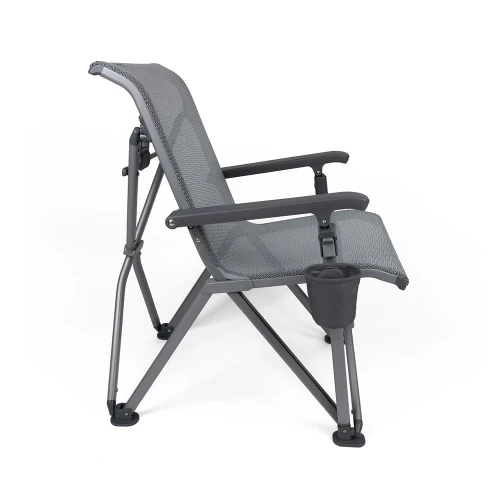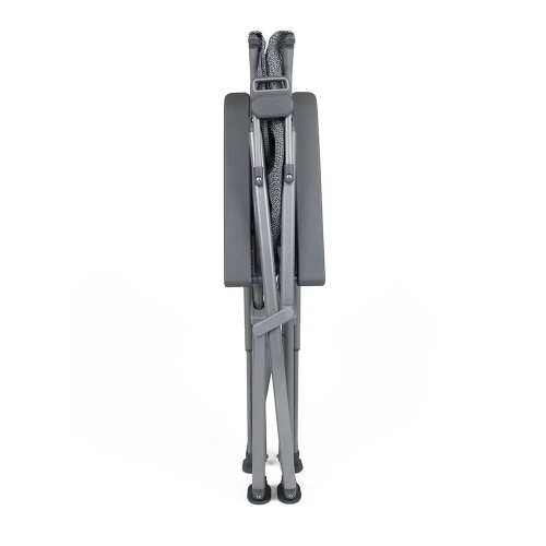 Den lette og smarte kryssramen gjør stolen enkel å pakke og ta med. Fargekodede strammere på stolens rygg og armlener låses på plass for å optimalisere stoffets styrke og komfort.