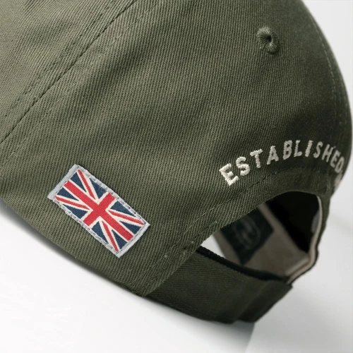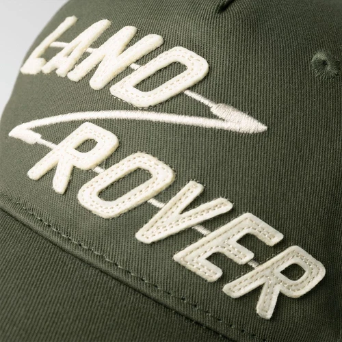 Den første i en fargeserie – denne 5-panelscapsen har et filtapplikeret vintage Land Rover-ikon på fronten. Hver bokstav er individuelt sydd, akkurat slik det måtte gjøres i 1948.